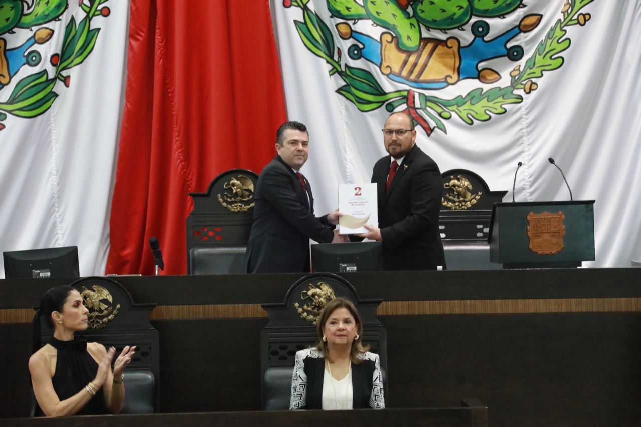A nombre del Gobernador Américo Villarreal Anaya, el Secretario General de Gobierno, Héctor Joel Villegas González, entregó al Congreso del Estado, el segundo informe sobre el estado que guarda la Administración Pública Estatal.