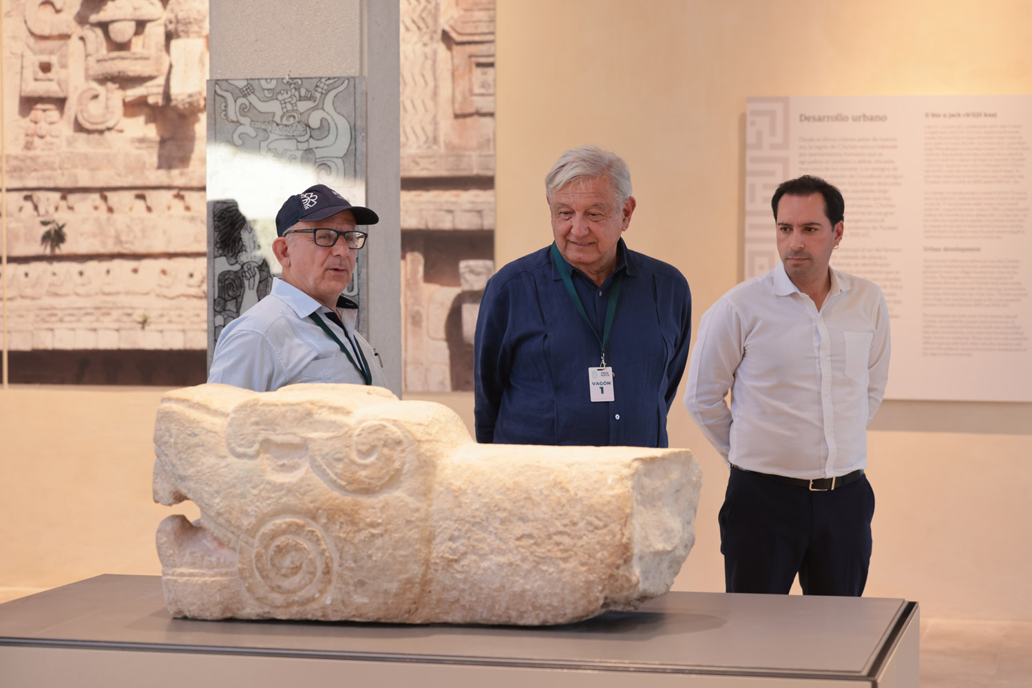 También asistieron: el subsecretario de Egresos de la Secretaría de Hacienda y Crédito Público, Juan Pablo de Botton Falcón; el director general del Grupo Aeroportuario, Ferroviario de Servicios Auxiliares y Conexos Olmeca – Maya – Mexica, José Gerardo Vega Rivera; el director general de la empresa de participación estatal mayoritaria Tren Maya, Óscar David Lozano Águila; la directora general de empresas ICA, Guadalupe Phillips Margain; el director de Ignitia Desarrollos, Octavio Silva Rivero y el coordinador nacional de Museos y Exposición del Instituto Nacional de Antropología e Historia, Juan Manuel Garibay López.