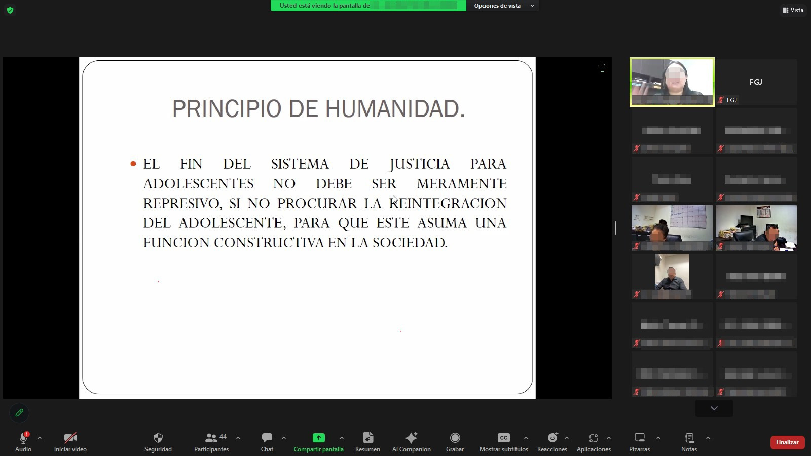 La actividad académica, desarrollada a través de la Dirección General de Formación y Servicio Profesional de Carrera, en coordinación con el Instituto de Formación Profesional, se llevó a cabo con la finalidad de que las y los servidores públicos adquieran habilidades y fortalezcan sus conocimientos sobre la Ley Nacional del Sistema Integral de Justicia para Adolescentes, así como los principios rectores de dicho sistema, brindando un trato digno a niñas, niños y adolescentes, así como el respeto a los derechos humanos, con las especificidades de los grupos etarios que marca la citada Ley.