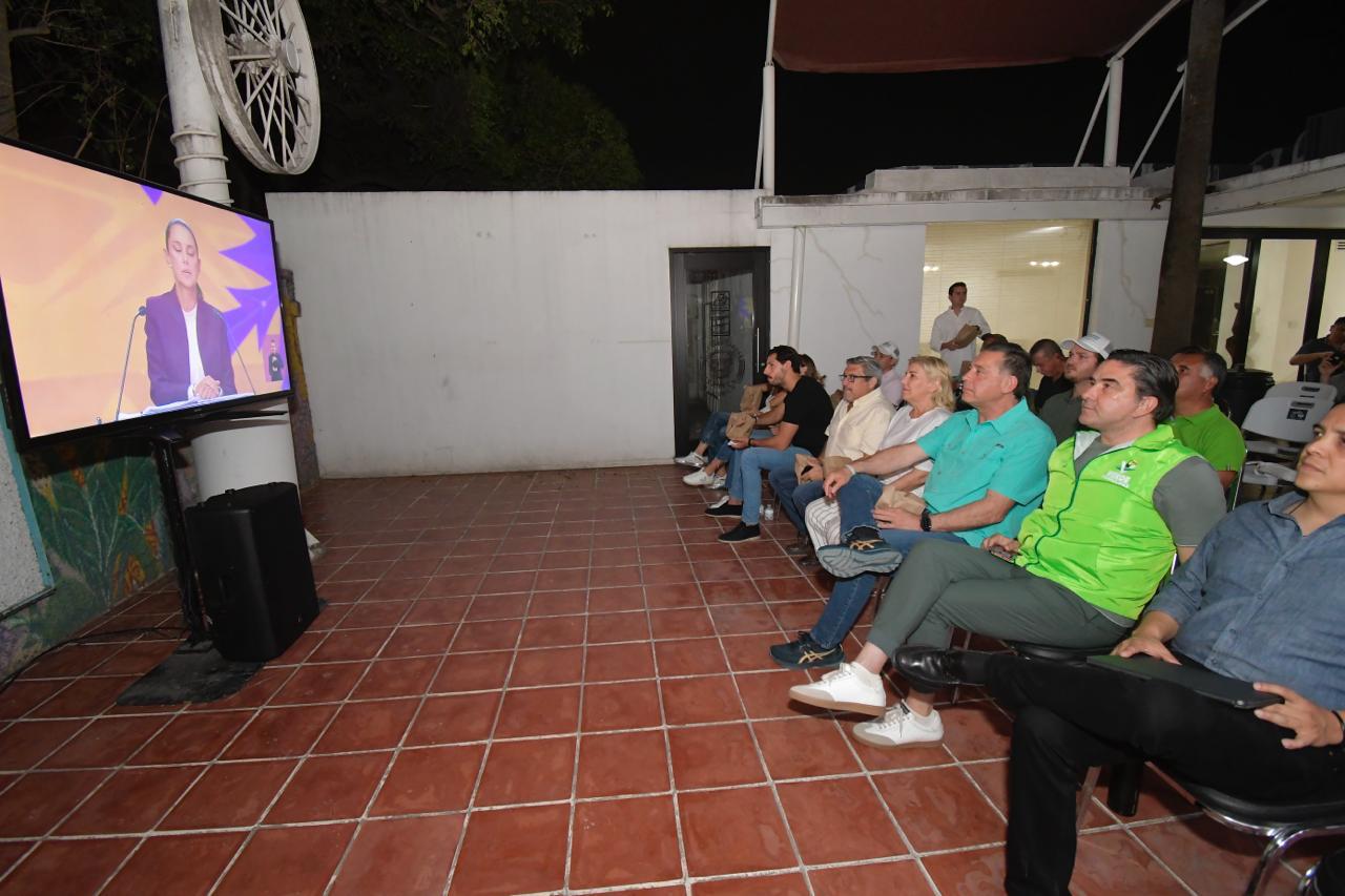 “Estoy muy contento de estar en el proyecto de la Cuarta Transformación con la Doctora Claudia Sheinbaum, con ella México va a continuar la transformación para ser un país más igualitario, un país en donde la gente más necesitada siga apoyando, siga recibiendo el apoyo del Gobierno, un Gobierno humanista, un Gobierno que apoya de verdad a la gente que más lo necesita, ese es el gobierno que necesita México y ese es el gobierno que nos ofrece la doctora Claudia Sheimbaum. Este debate tuvo el gusto de verlo junto con mi familia, junto con el equipo de trabajo y estamos muy contentos y muy orgullosos de pertenecer al movimiento que llevará a Claudia Sheinbaum a la presidencia de la República. Sheinbaum no solamente va a ganar, va a arrasar porque no tiene contrincante enfrente”.