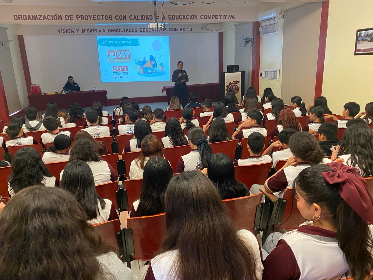 Además, impartieron una plática sobre la prevención del delito y la cultura de la denuncia a 70 alumnos de la institución quienes se mostraron abiertos y receptivos a la información, contribuyendo con ello a fomentar la cultura de la denuncia y la prevención de delitos.