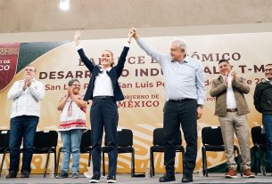 “Vamos a hacer de la mano de la próxima jefa de Gobierno de la ciudad, Clara Brugada; de la gobernadora del Estado de México, Delfina Gómez, y del gobernador de Hidalgo, Julio Menchaca, un gran plan hídrico para toda la zona centro del país y vamos a recuperar el río Tula, vamos a hacer un gran saneamiento del río Tula, junto también con lo que significa darle la viabilidad de agua potable, que también es un derecho para toda la región centro del país.”