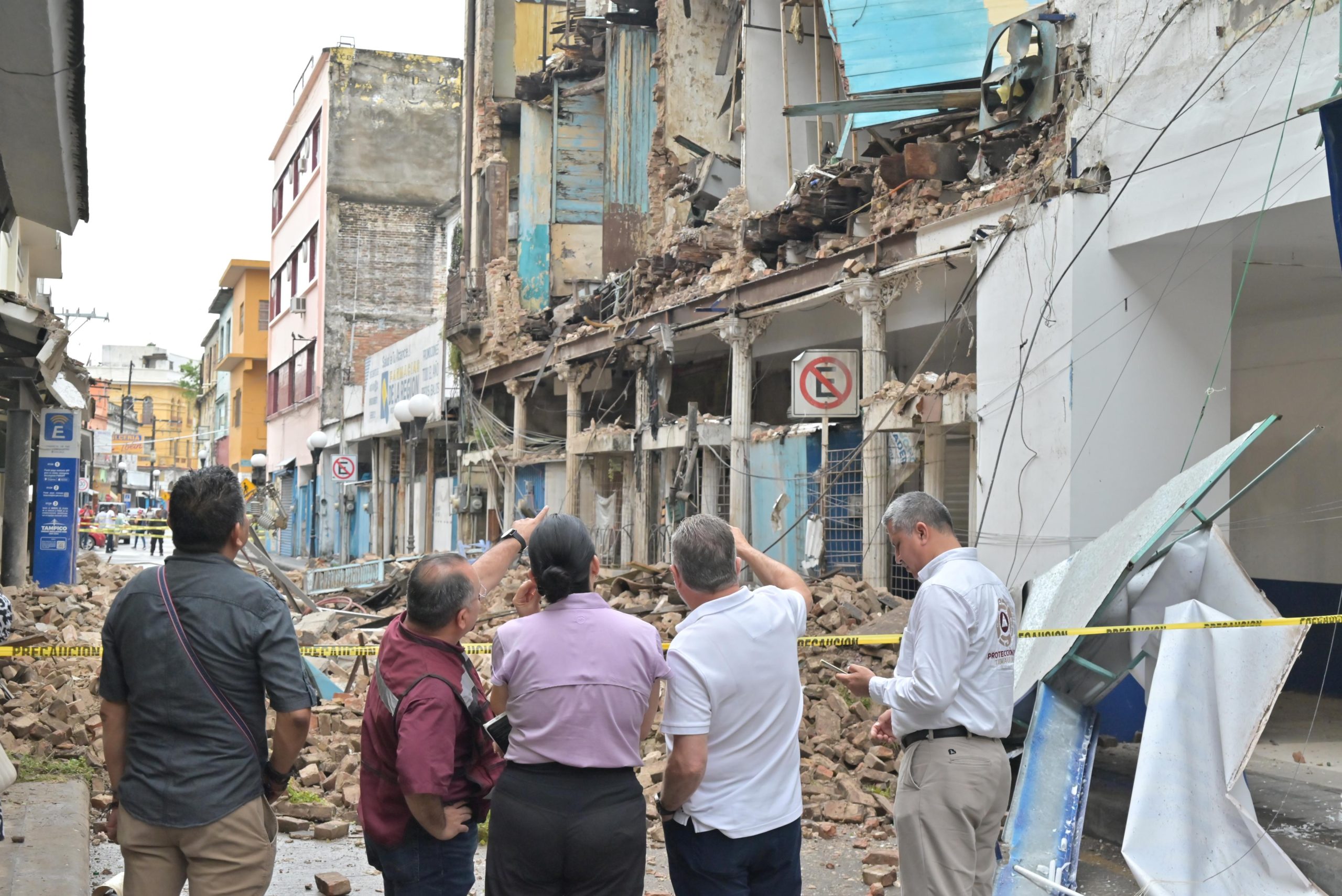 La Presidenta Municipal Mónica Zacil Villareal Anaya, acudió a brindar todo el apoyo al colapso registrado la mañana de este sábado en la fachada del edificio del antiguo hotel Progreso, ubicado en la zona centro de Tampico, girando instrucciones precisas a las diversas dependencias para garantizar la seguridad de la población.