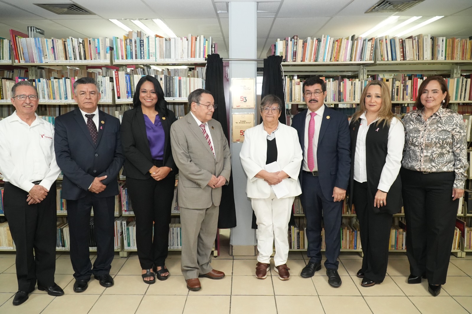 En el evento se destacó el reconocimiento a quienes impulsaron hace 53 años la fundación de este plantel del Campus Victoria, y en ese contexto se hizo entrega de un donativo de las colecciones de libros del escritor Orlando Ortiz por parte de su viuda, María del Carmen Raquel Galicia Patiño, así como del Fondo de Colecciones del Dr. Héctor Manuel Capello y García.