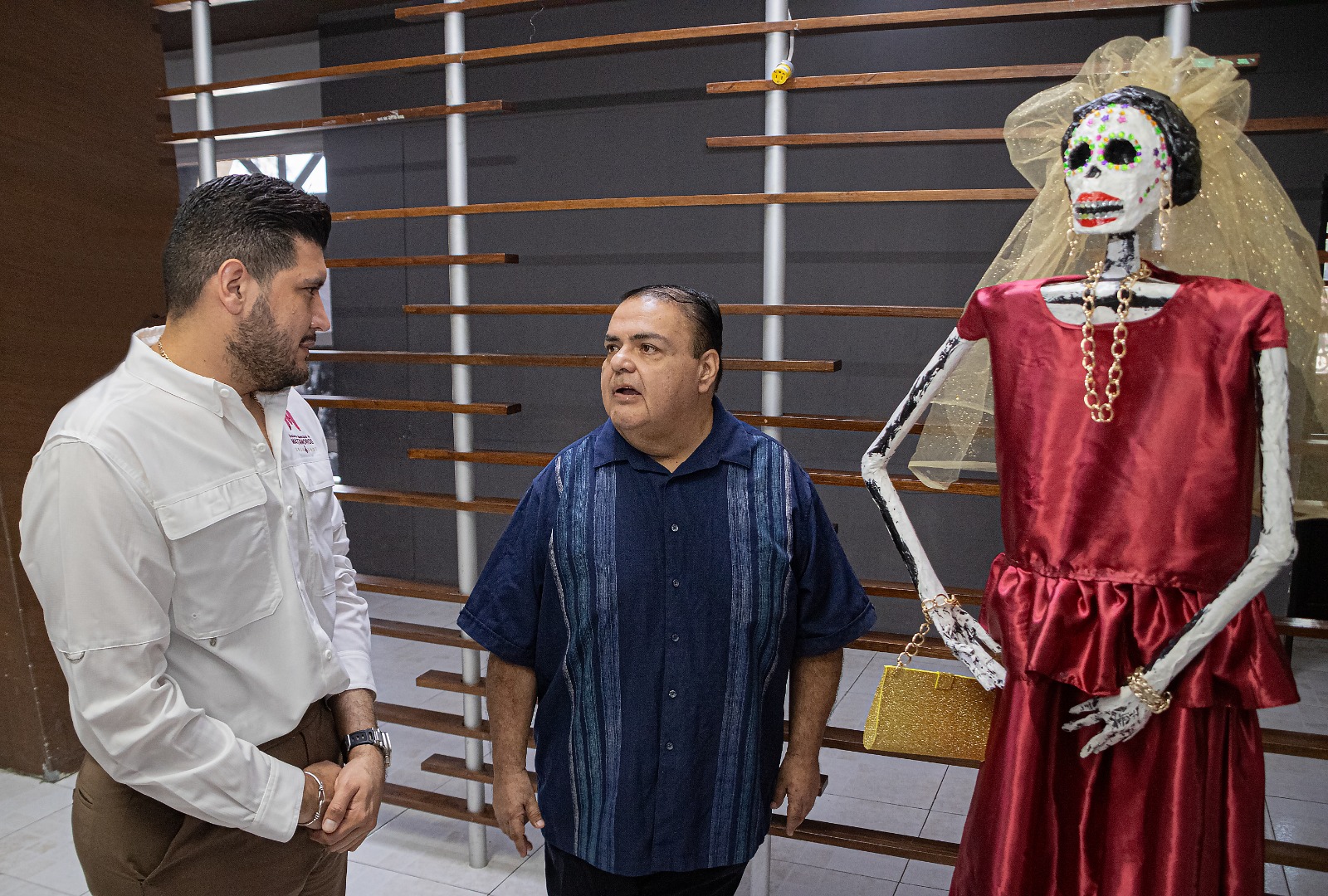 El Mtro. Munive decidió regalar su Catrina al alcalde de Matamoros, Alberto Granados. La escultura será destinada, ya sea para decorar su oficina o para formar parte de las ofrendas que se monten en el marco del Día de Muertos.