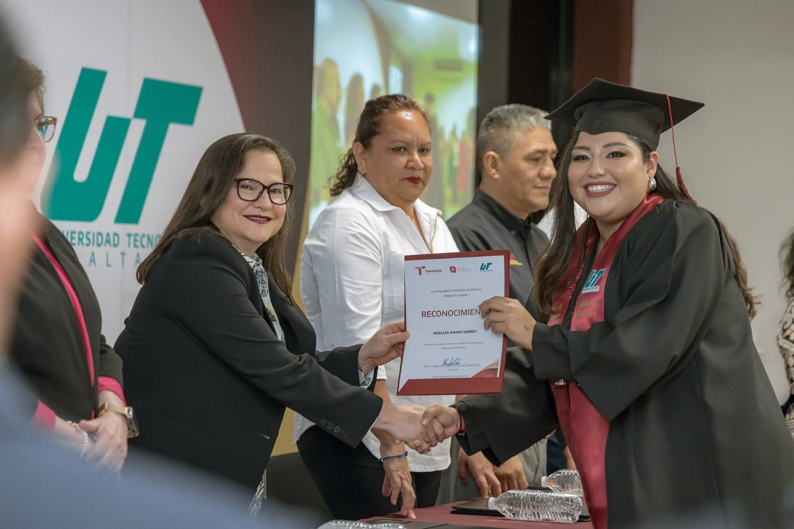 Por su parte, la doctora Mara Grassiel Acosta González, rectora de la Universidad Tecnológica de Altamira, agradeció a la secretaria de Educación por amadrinar a esta generación y reiteró el compromiso de la institución de formar a jóvenes especialistas en las áreas del saber que requiere el mercado laboral de la actualidad.