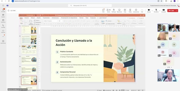 Ciudad Victoria, Tamaulipas. – La Fiscalía General de Justicia del Estado de Tamaulipas, en colaboración con la Universidad Autónoma de Tamaulipas (UAT), capacitó a las y los servidores públicos en el tema “Comunicación Asertiva”.