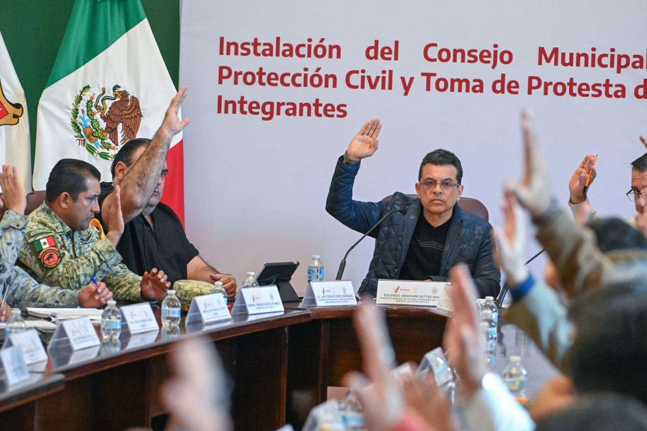 Cd. Victoria. – El presidente municipal de Victoria Eduardo Gattás Báez instaló y tomó protesta a integrantes del Consejo Municipal de Protección Civil para coordinar acciones de protección y auxilio a la población durante la temporada invernal, en la que restan 34 frentes fríos.
