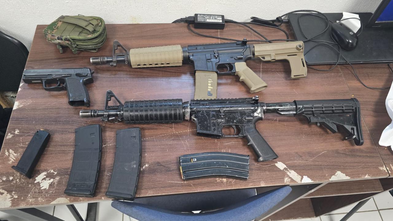 Durante un recorrido de vigilancia en ciudad Victoria, los cuatro masculinos fueron detenidos por elementos de la Guardia Estatal y puestos a disposición del Ministerio Público Federal, en posesión de 2 armas largas tipo AR 15, así como un arma corta calibre 9 milímetros, configurando los delitos de armas y cartuchos de uso exclusivo de las Fuerzas Armadas, previstos en la Ley de Armas y Fuego y Explosivos.