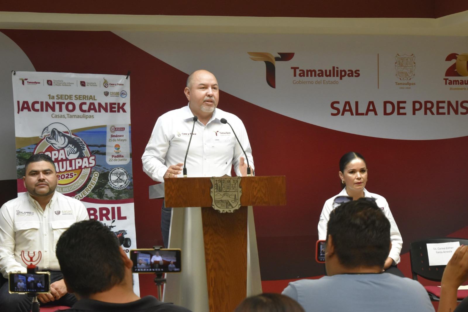 Ciudad Victoria, Tamaulipas.- Con el objetivo de fortalecer el turismo deportivo y promover la convivencia familiar en entornos naturales, la Comisión de Caza y Pesca Deportiva de Tamaulipas presentó el Serial Regional 2025, una iniciativa que reunirá a los municipios de Casas, Jiménez y Padilla en torno a la pesca deportiva en la presa Vicente Guerrero.