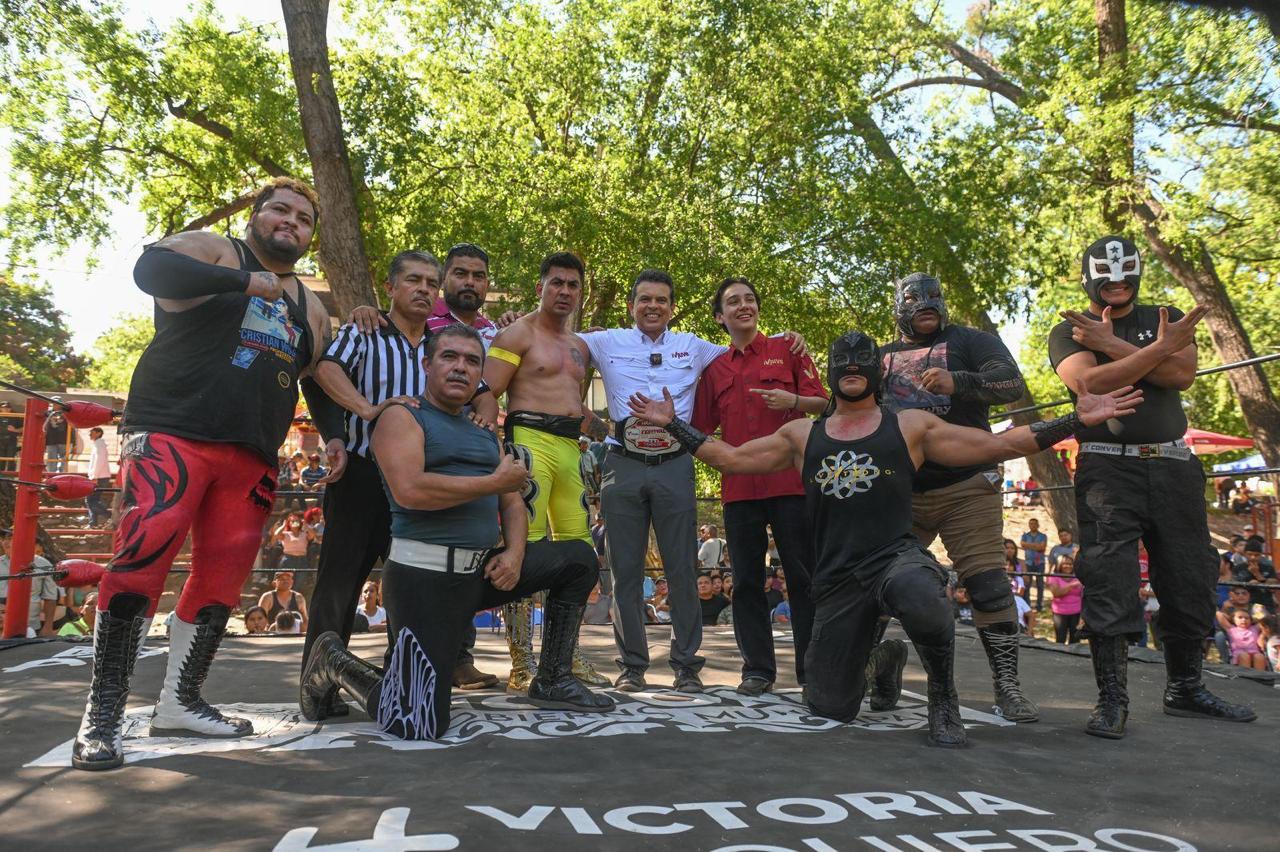 Lalo y Lucy, acompañados de sus hijos Galilea, Abraham y Jacobo, disfrutaron del baile, el afecto de las familias y entretenida función de lucha libre en la que obsequiaron a niños, jóvenes y adultos palomitas, bebidas y helados para disfrutar del espectáculo sobre el ring.