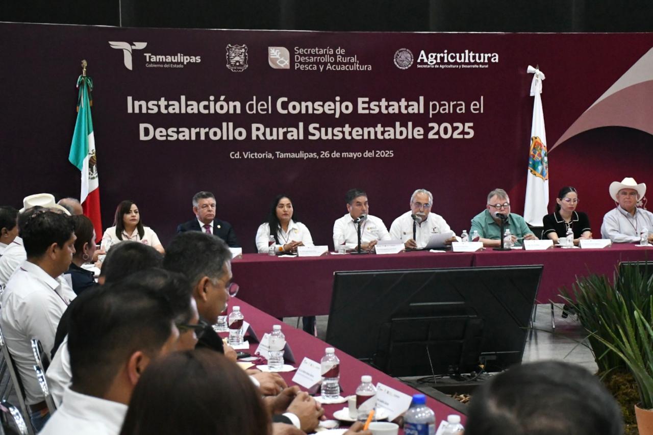 Ciudad Victoria, Tamaulipas. – Con el firme compromiso de impulsar el crecimiento del sector agropecuario y garantizar el uso eficiente de los recursos destinados al campo tamaulipeco, se llevó a cabo la instalación del Consejo Estatal para el Desarrollo Rural Sustentable, esta sesión reunió a autoridades estatales, federales, académicas, alcaldes y representantes de las y los productores de Tamaulipas.