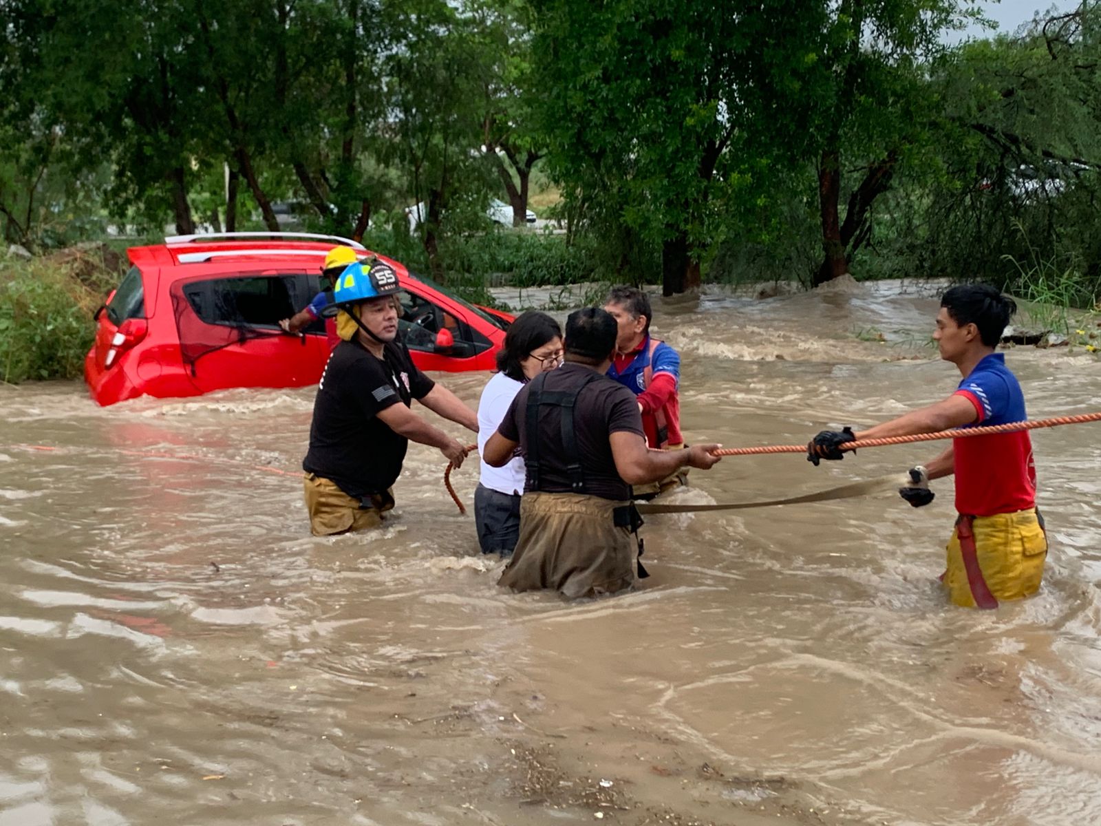 De acuerdo al parte incidencias de PC Municipal, se rescató a 4 adultos y 2 menores de vehículos varados, un motociclista arrastrado por la corriente y se atendió el reporte de personal directivo de las primarias Benito Juárez de la colonia Lázaro Cárdenas y Rosendo Lara del Ejido Guadalupe Victoria.