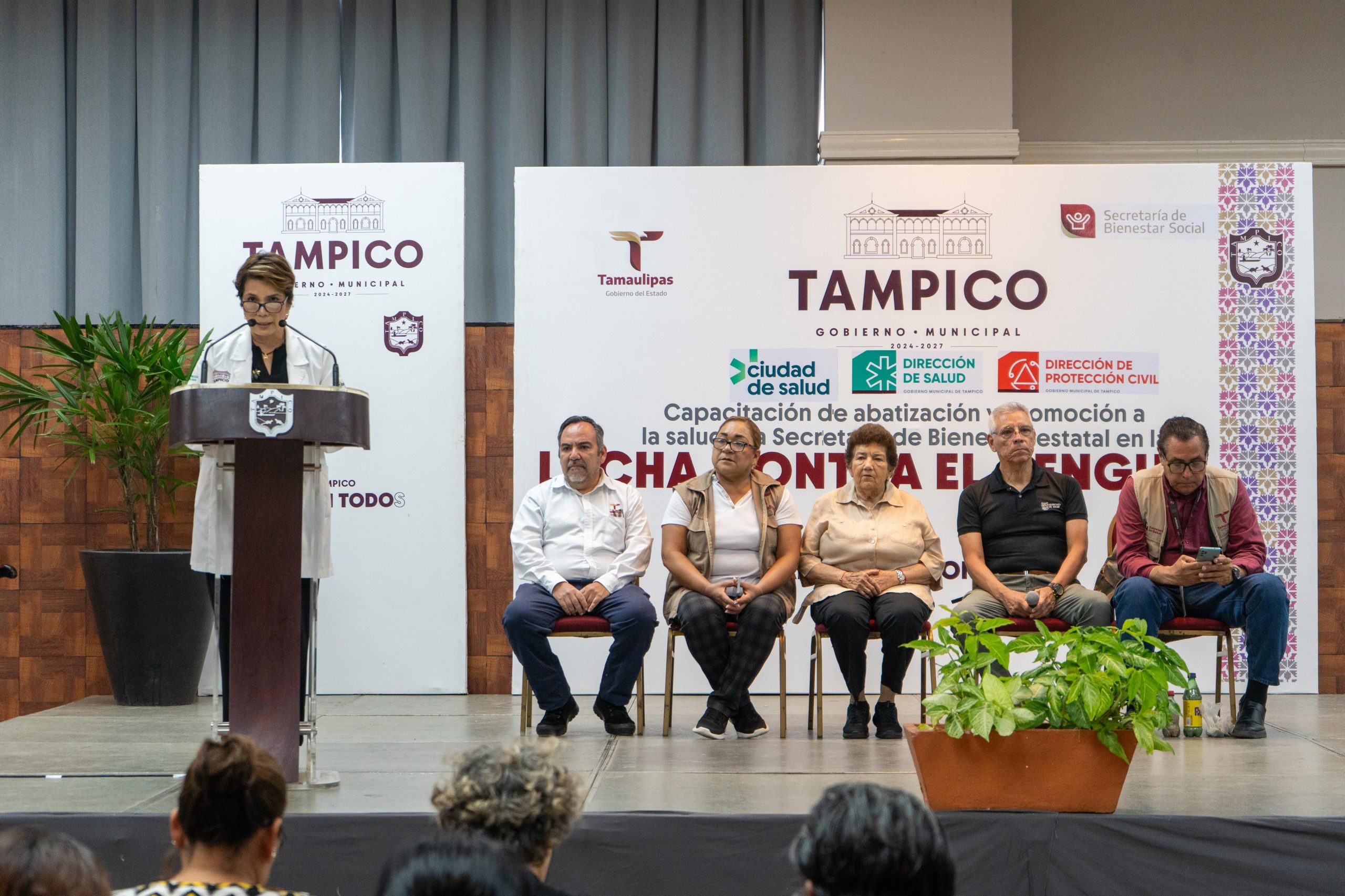 Por indicaciones del secretario de Salud, Vicente Joel Hernández Navarro, y en el marco de la coordinación con la alcaldesa Mónica Villarreal Anaya, en la Casa de la Cultura del puerto de Tampico se realizaron las actividades de capacitación y actualización para el control de esta enfermedad, abatización, eliminación de criaderos y descacharrización.