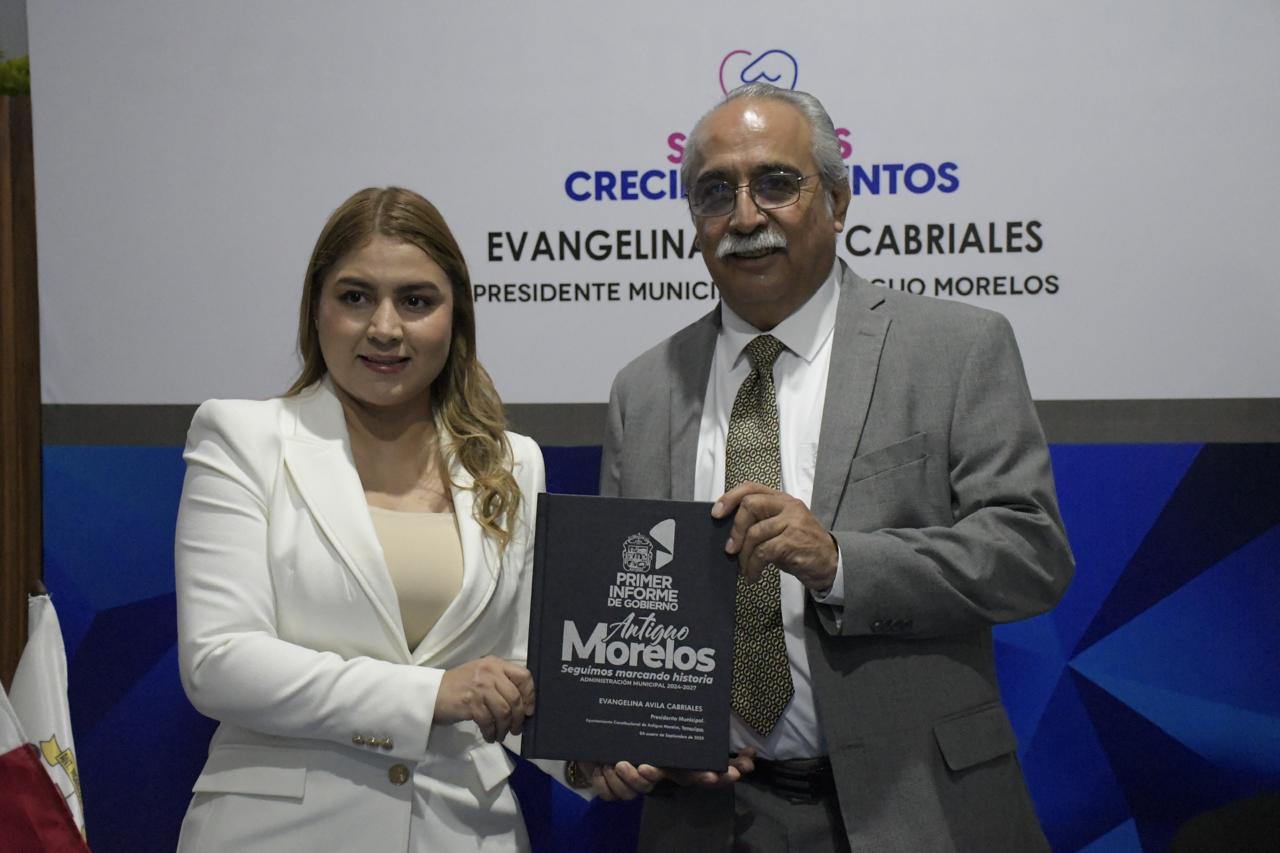 “Es un honor acudir a este acto en representación del gobernador Américo Villarreal Anaya, quien envía su reconocimiento y felicitación a la presidenta municipal Evangelina Ávila Cabriales y a su equipo por el esfuerzo y compromiso demostrado en favor del bienestar y la prosperidad de Antiguo Morelos durante este primer año de gobierno”, expresó Antonio Varela Flores.