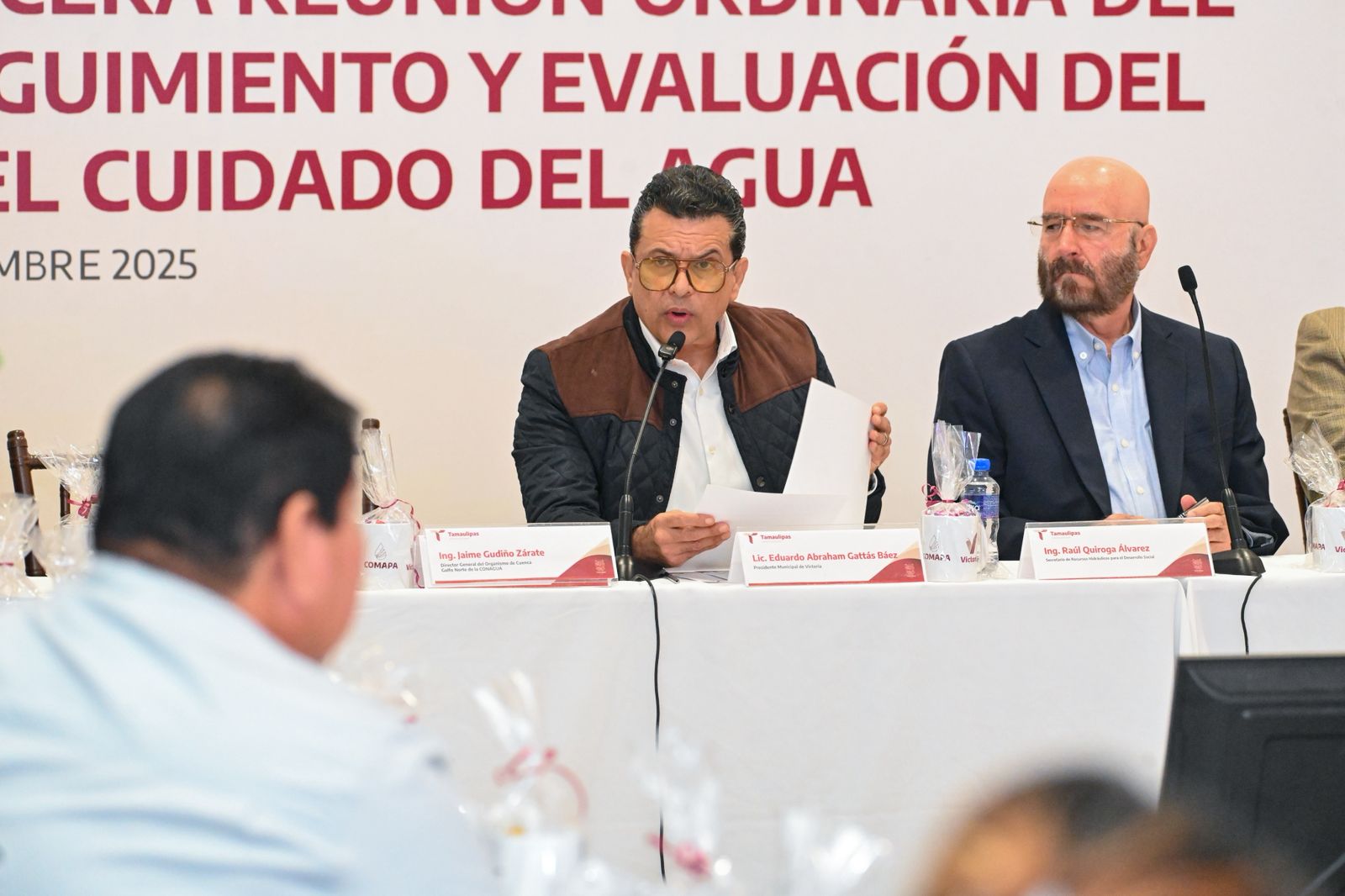 Cd. Victoria. – El alcalde de Victoria Eduardo Gattás Báez presidió, junto al secretario de Recursos Hidráulicos para el Desarrollo Social del gobierno del Estado, Raúl Quiroga Álvarez, la vigésima tercera reunión ordinaria del Comité de Seguimiento y Evaluación del Semáforo del Cuidado del Agua.