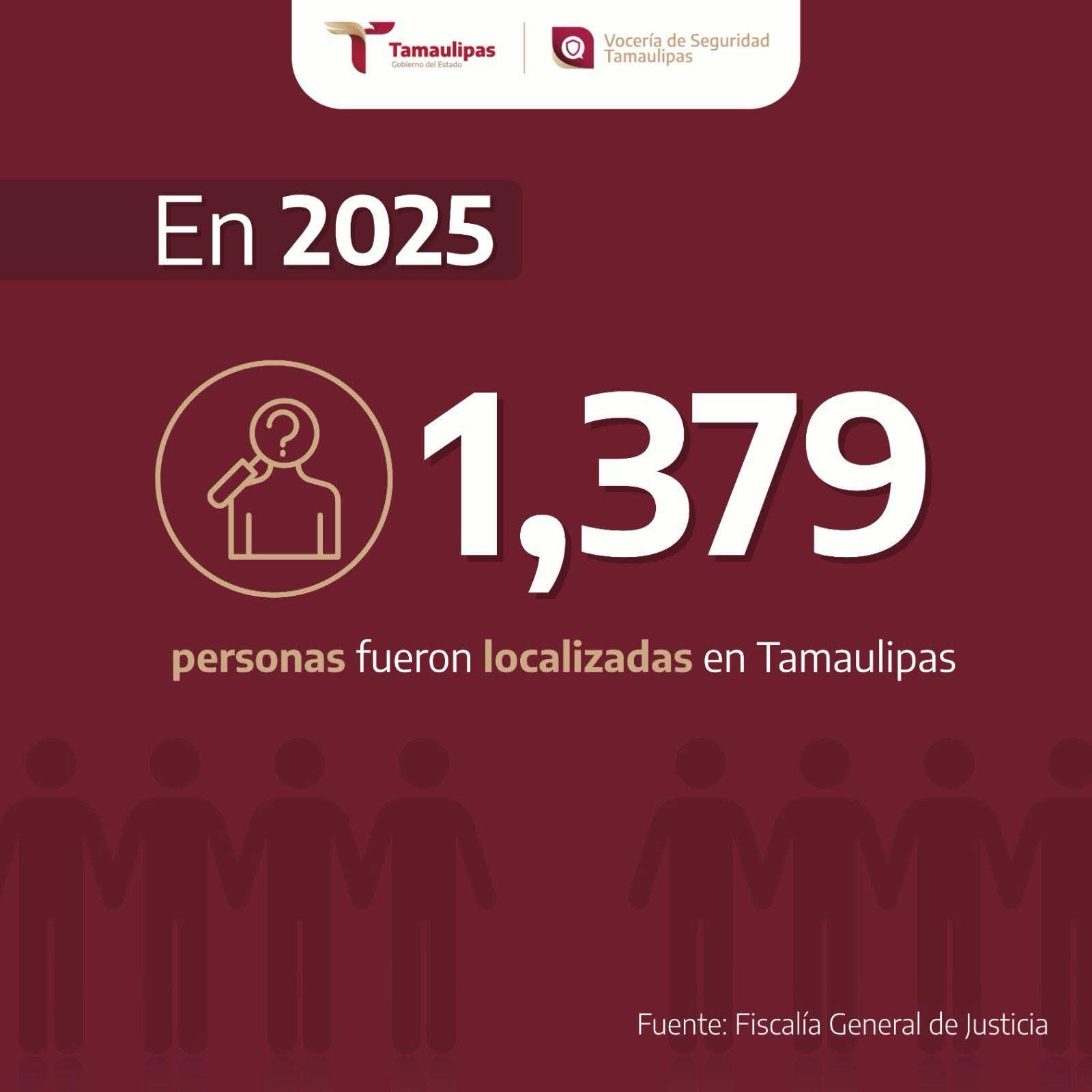 Durante el año 2025, derivado de las acciones de investigación, búsqueda e identificación de personas no localizadas y en estricto apego a los protocolos de actuación vigentes, se logró la localización de 1,379 personas que contaban con reporte de no localización en la entidad.