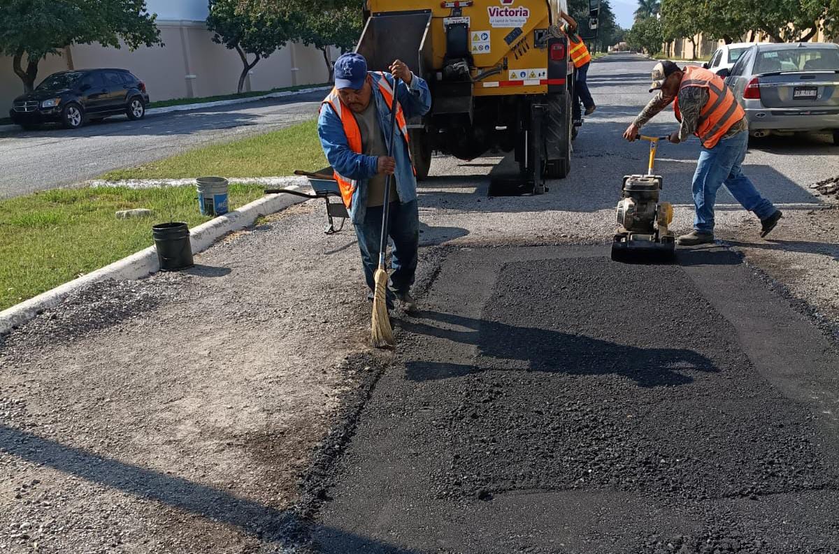 El programa de bacheo, incluyó la restauración de superficie de rodamiento en la Avenida de la Unidad, entre Carlos Adrián Avilés y libramiento Portes Gil; y calle Fundadores del Nuevo Santander, del Residencial Villa del Palmar.