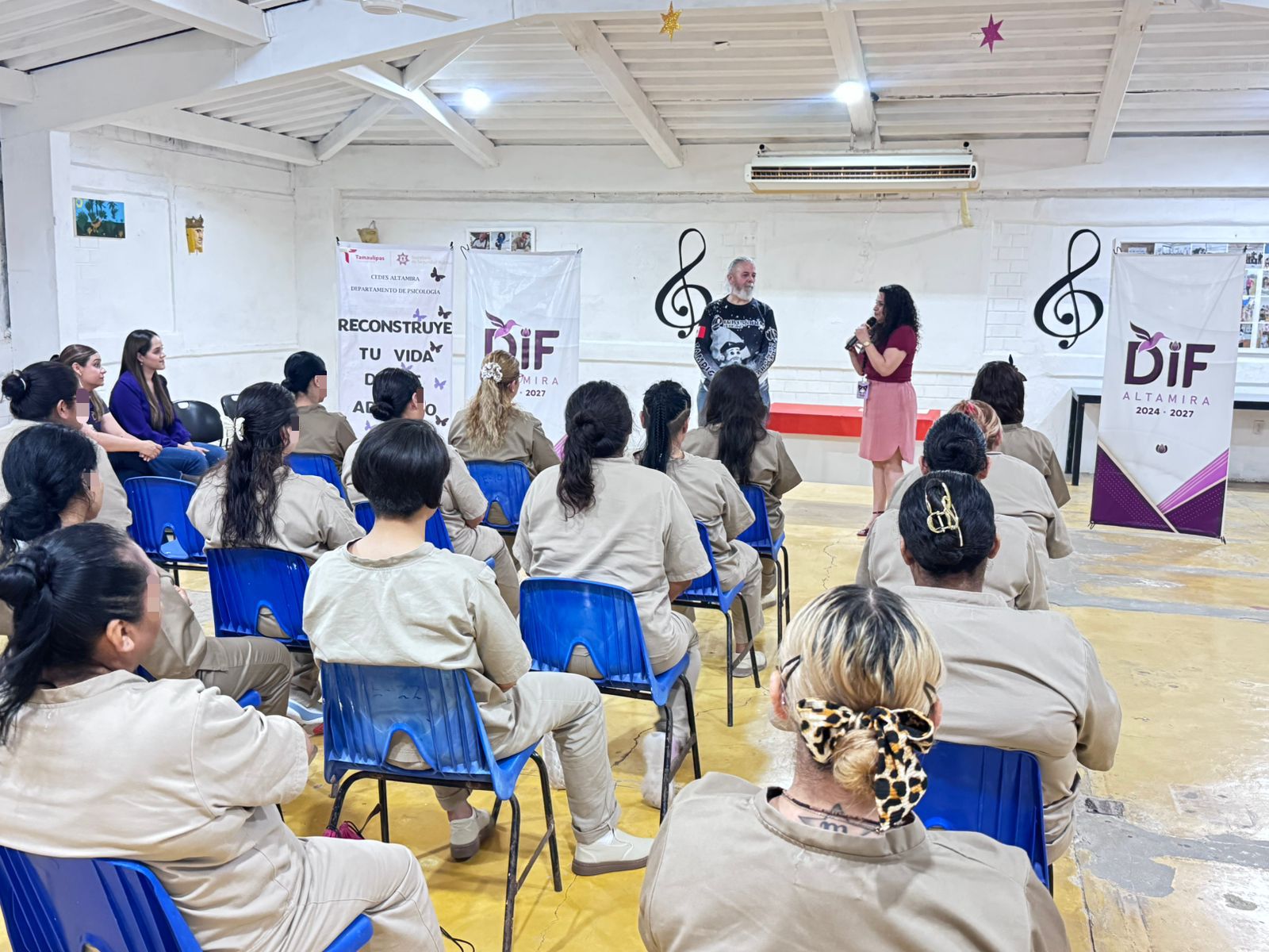 Altamira, Tamaulipas.- Como parte de las actividades conmemorativas del Día Internacional de la Mujer, el Centro de Ejecución de Sanciones (CEDES) del municipio de Altamira recibió a integrantes del voluntariado del Ayuntamiento, quienes impartieron la conferencia “Reconstruye tu vida desde adentro”.