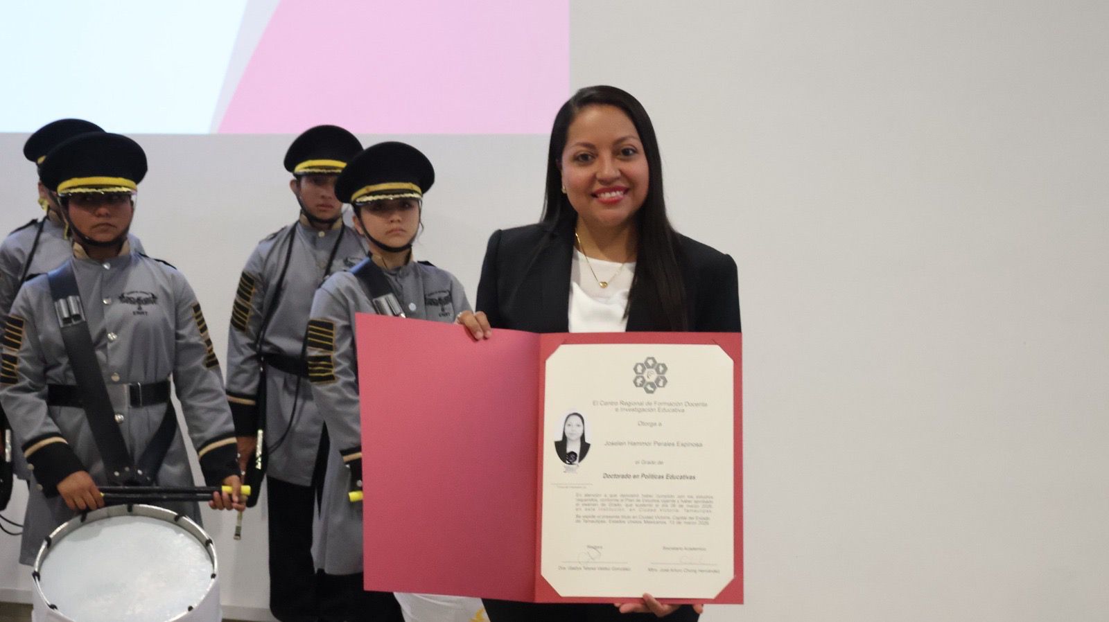 Gladys Teresa Valdez González, rectora del CRETAM, expresó que la ceremonia simbolizó años de preparación, rigor académico y compromiso con la transformación educativa, al tiempo que reconoció el esfuerzo de las y los graduados, así como el acompañamiento de sus familias, docentes, asesores y autoridades.