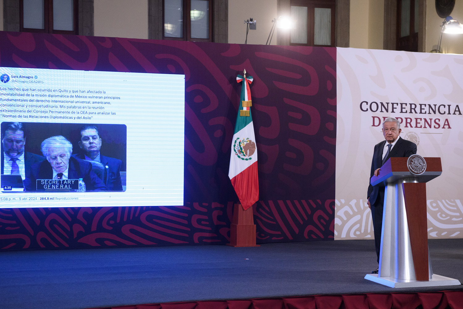 Luego de la Cumbre Extraordinaria de Jefas y Jefes de Gobierno y de Estado de la Comunidad de Estados Latinoamericanos y Caribeños (CELAC), el presidente Andrés Manuel López Obrador agradeció a los gobiernos de Venezuela y Honduras, países que determinaron retirar a su personal diplomático instalado en Ecuador en un acto de solidaridad con México por el asalto a la embajada en Quito el pasado 5 de abril.