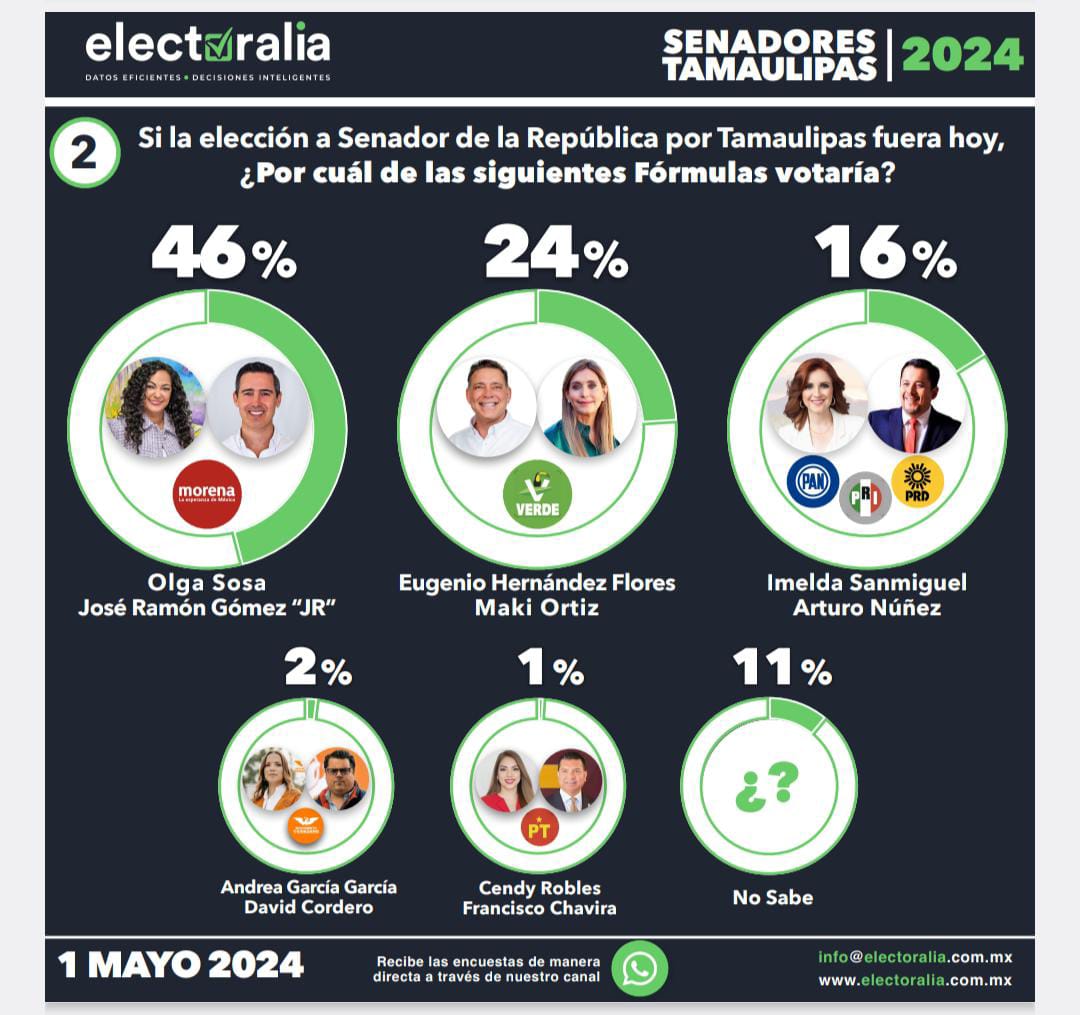 La campaña de propuestas de la fórmula del Partido Verde al Senado de la República Eugenio Hernández y Maki Ortiz, sigue dando frutos que se reflejan en los resultados de las encuestas donde se registra un crecimiento mantenido a lo largo de dos meses de campaña.