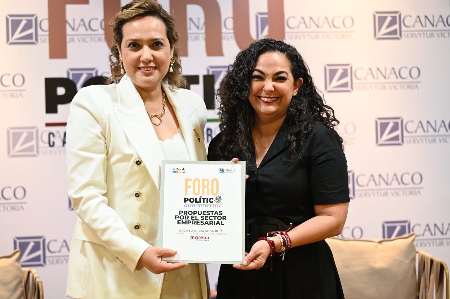 Ante empresarios de todos los rubros económicos de la capital de Tamaulipas, la candidata de Morena al Senado Olga Patricia Sosa Ruíz, hizo la presentación de los ejes en materia de empleo, economía y propuestas de campaña, como parte del foro político organizado por la Cámara Nacional de Comercio, Servicios y Turismo que preside Greyci Ethel Robles Barajas.